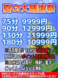 ※90分以上なら即尺・AF・顔射なんかも無料♪