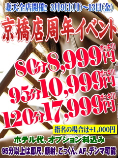 合言葉『周年』で・・・女性指名料込みで♪